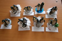 "Пингвины"- работы младших классов, выполнена из природного материала