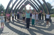 В День Российского флага преподаватели хореографического отделения в парке перед зданием ЗАГСа провели танцевальный флешмоб "Триколор республики родной"