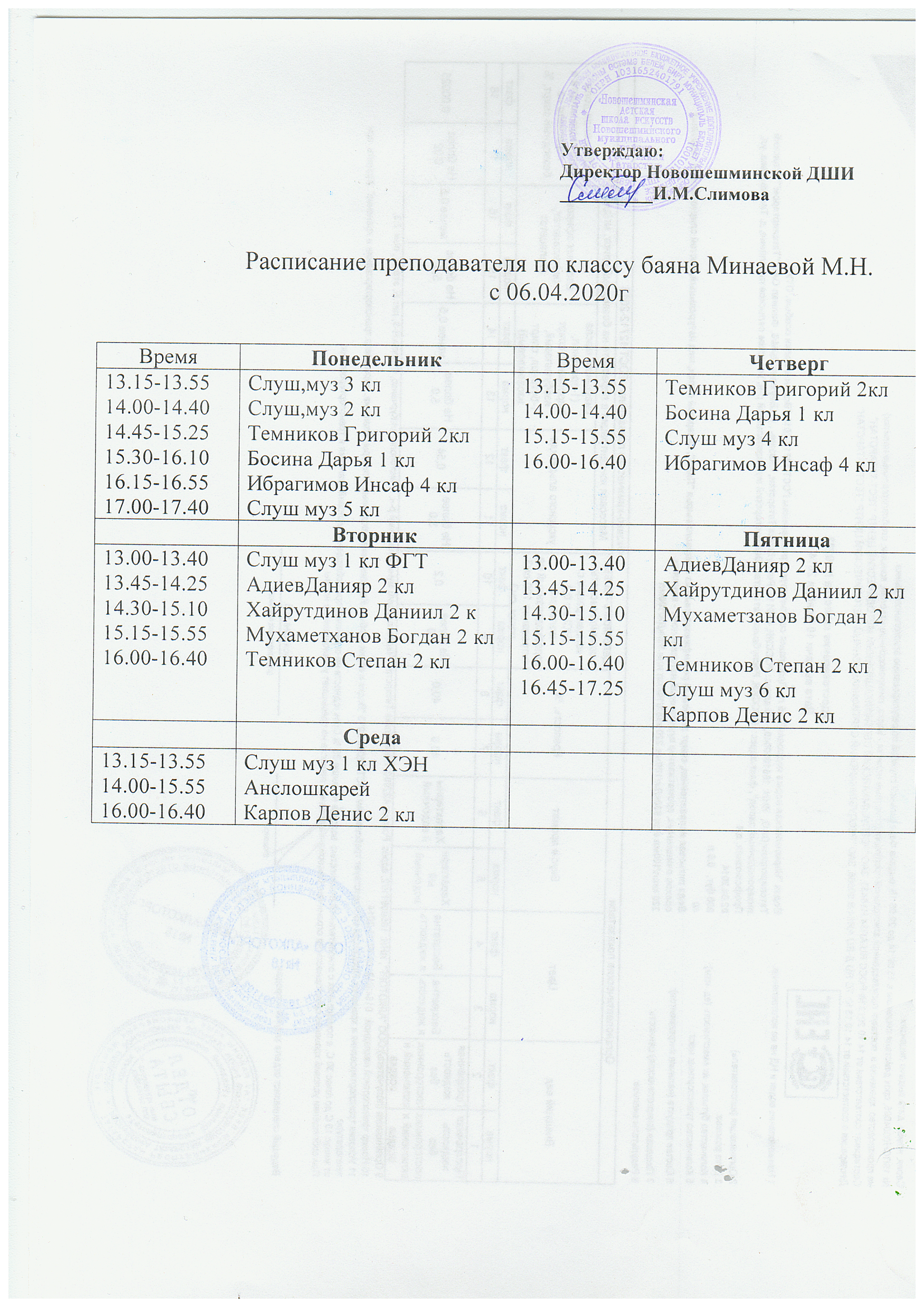 Расписание по классу баяна преподаватель Минаева М.Н..bmp
