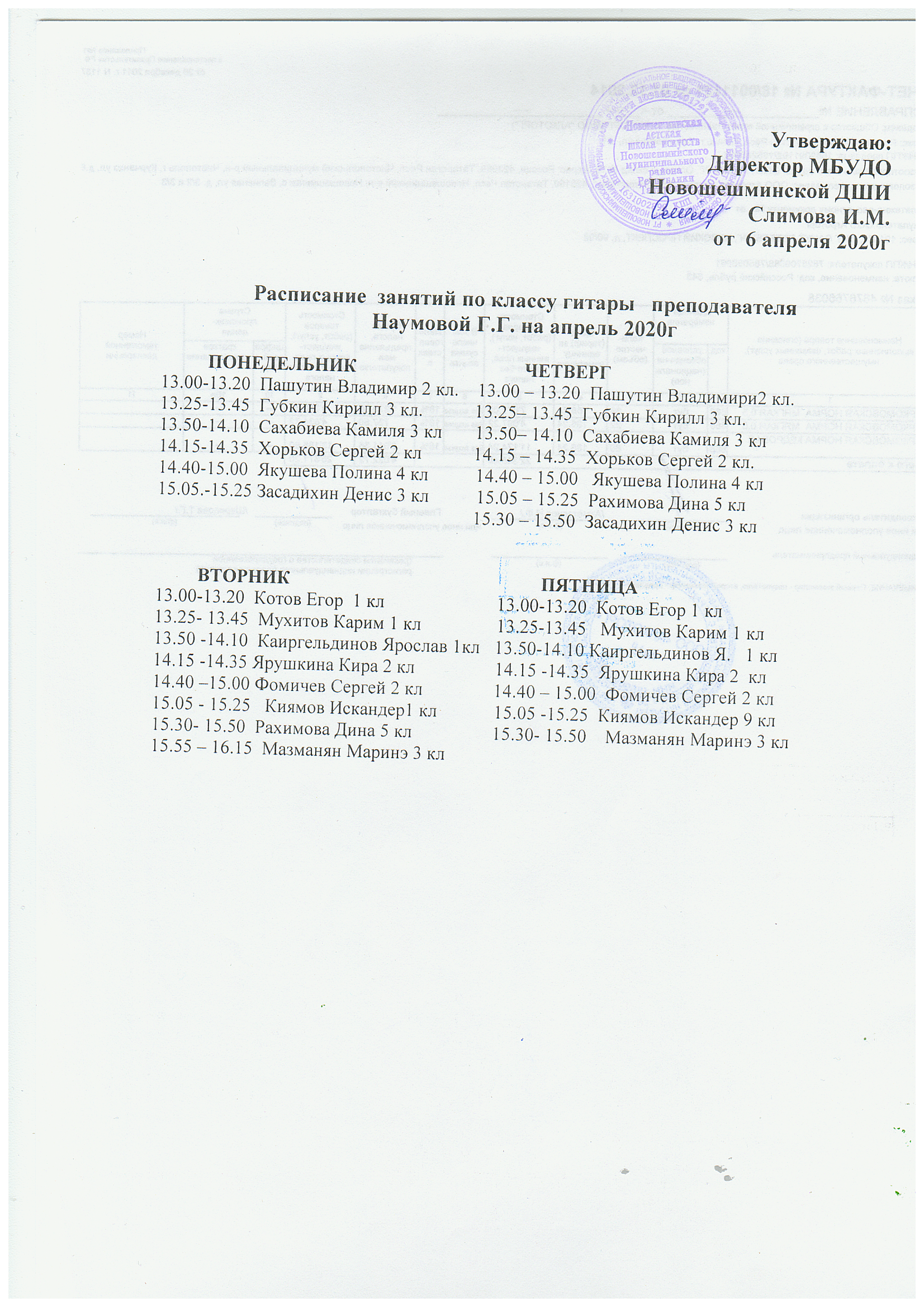 Расписание по классу гитары преподаватель Наумова Г.Г.bmp