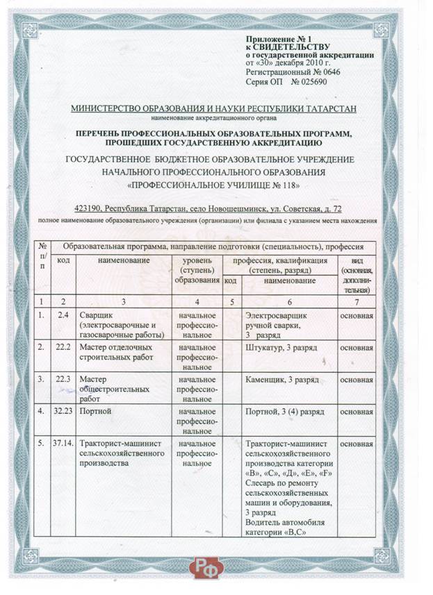 Приложения к лицензии 3 по филиалу №2 в Новошешминске