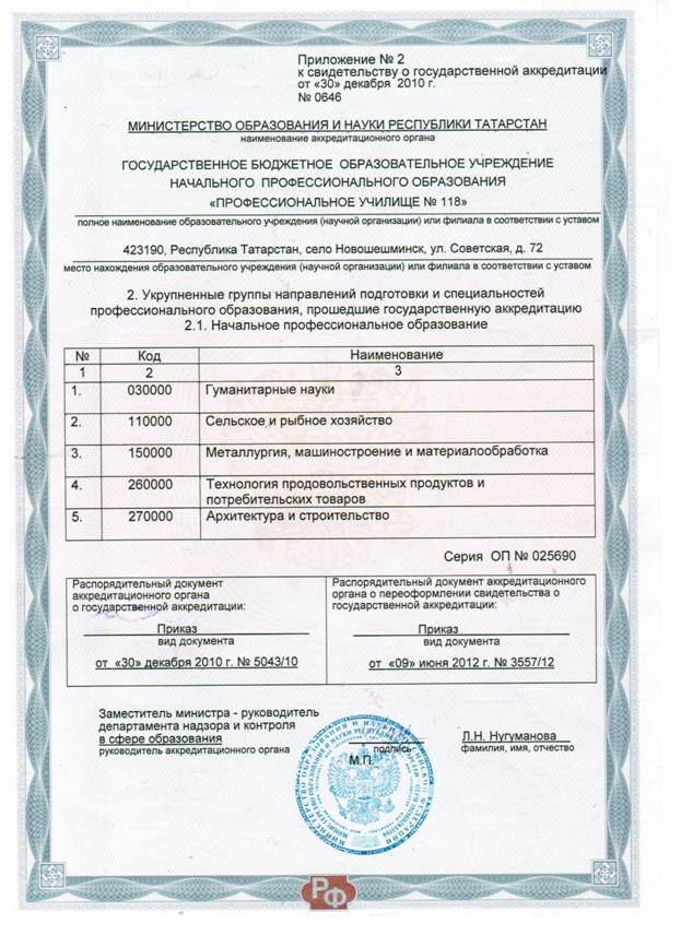 Перечень профессиональных образовательных программ прошедших государственную аккредитацию
