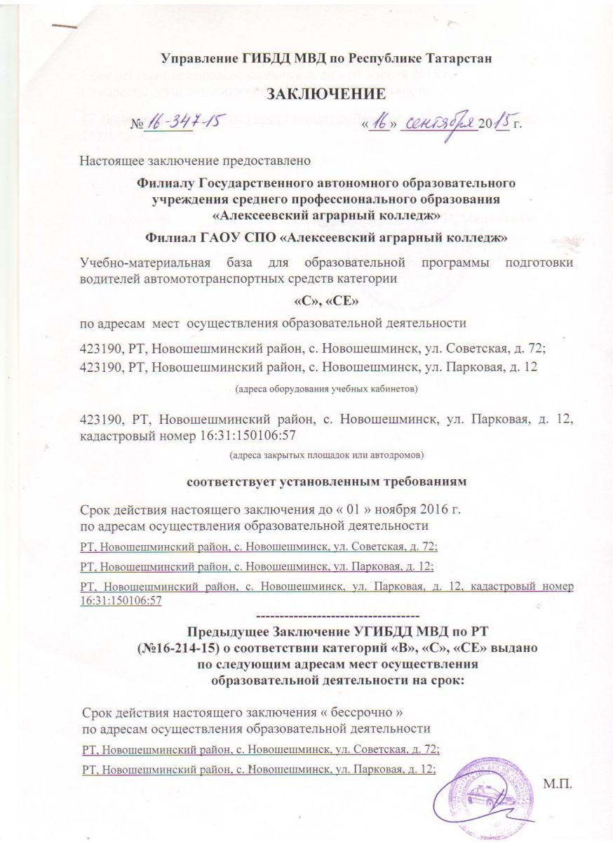 Заключение ГИБДД МВД по РТ "C" "СЕ"