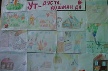 Янгынга каршы укучылар ясаган рәсемнәрдән стенд ясалды