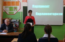 Тарих һәм җәмгыять белеме укытучысы Шакирова Г.Р. "Законнар кая туа?" темасына парламент дәресе үткәрде.Дәрестә Район Советы депутаты Сөләйманов Г.М катнашты.