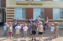 В преддверии Дня России в нашем детском саду Наталья Валентиновна провела флешмоб — ребята дружно исполнили танец , размахивали флагами и зарядились отличным настроением!