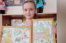 Бадяева Анастасия со своими рисунками по сказкам Габдуллы Тукая "Шурале", "Су анасы"