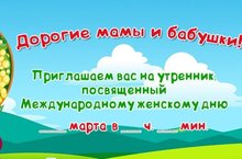 Уважаемые родители! Наш прекрасный музыкальный зал ждет наших дорогих мам и бабушек на праздничный утренник, который состоится 5 и 6 марта.
