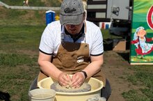 он показывал желающим мастер-класс по изготовлению глиняных изделий, а также представил небольшую выставку изделий из дерева и глины