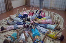 наш музыальный руководитель занимается с детками гимнастикой в форме ритмических движений