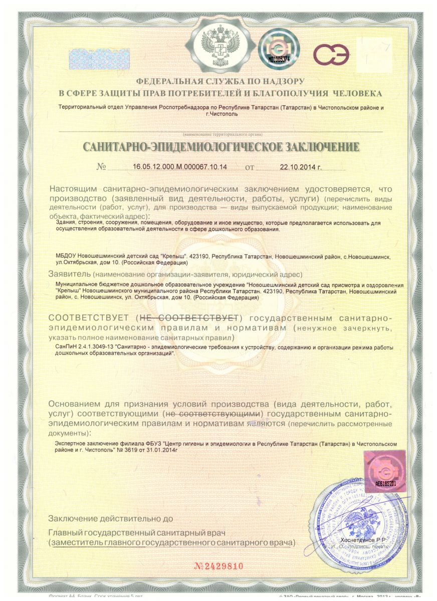 Муниципальное бюджетное дошкольное образовательное учреждение Новошешминский детский сад присмотра и оздоровления "Крепыш" Новошешминского муниципального района Республики Татарстан