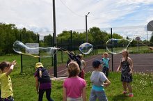 Сегодня в пришкольном детском лагере "Солнечный" была проведена игра "Вежливость вокруг нас", и заключительным этапом было "шоу мыльных пузырей".