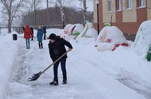 Сегодня в лагере прошли плановые мероприятия, а затем ребята и воспитатели решили перед закрытием смены сделать уборку территории от снега.