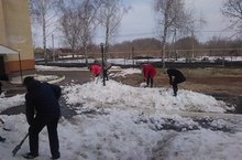 Сегодня в нашей школе прошёл субботник. Была организована работа по очистке территории и уборки снега.