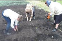 Продолжается работа на пришкольном участке. Сегодня была высажена рассада капусты.