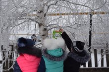 Учащиеся 3 класса в школьном парке повесили кормушки, чтобы подкармливать пернатых друзей в зимние морозы.