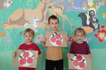 Аппликация младшая группа. Формировать умение наклеивать готовые формы фруктов.