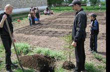 Учащиеся 9 класса посадили березки в центре села и елочки около школы.