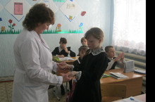 Каждый месяц фельдшер ФАПа Быкова В.В. приходит в школу с проверкой учащихся.