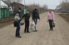 Учащиеся нашей школы вместе с классными руководителями убирали мусор по улицам нашего села, чтобы в селе было чисто.