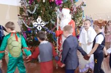 В 1-5 классах в этот день в 13.00 часов интересно было проведено праздничное представление "Скоро, скоро Новый год!" Шутки, песни, танцы, стихи и поздравления с Новым годом звучали сегодня. Дедушка Мороз со Снегурочкой были долгожданными героями этого праздника.Литературных персонажей из любимых сказок сыграли учащиеся 5 класса.В конце представления дети получили сладкие подарки от Деда Мороза.