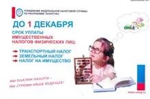 Срок уплаты имущественных налогов физических лиц до 1 декабря! 27.11.2017