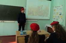 В этот день юнармейский отряд нашей школы провел небольшой квест "По страницам истории"