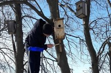 На участке нашей школы очень много "домов" для пернатых. Первые скворцы уже прилетели и заняли свои "квартиры", наведя там небольшой порядок. Чтоб "домов" хватило всем, учащиеся 8 класса установили новые скворечники.
