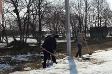 В рамках акции " ЭКОВесна-2017" прошел средник по очистке территории от снега.