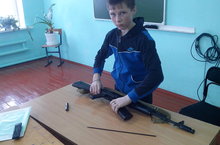 В школе в рамках месячника "Военно-патриотическоге воспитание" проводятся учебно-тренировочные занятия по сборке и разборке автомата, по применению ОЗК.