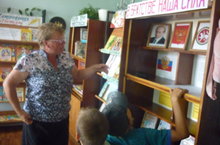 Десятый день смены пришкольного лагеря был посвящен книге. Вожатые познакомили ребят с различными видами книг (художественной литературой, научной и т.д.). Особо привлекли внимание к книгам о здоровье. Небывалый интерес вызвали книги у ребят, которые научились читать совсем недавно. Завершилась тематика книги посещением сельской библиотеке, где Лариса Леонидовна (библиотекарь) рассказала об истории первой книги и том, как книги создаются сегодня. Выставочные стелажи помогли ребятам лучше разобраться в "мире книг".