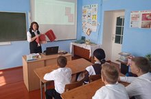 Сегодня в рамках месячника безопасности отряд ЮИД с руководителем отряда провели для первоклассников экскурсию по селу по теме "Безопасный путь в школу ".