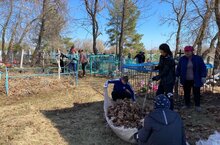 Уборка территории продолжается. Сегодня приняли участие в благоустройстве территории кладбища.
