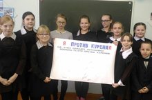 В 4 классе проводился классный час о вреде курения и одновременно проводилась акция " Я против курения", учащиеся собирали подписи на плакате, тех кто против курения....