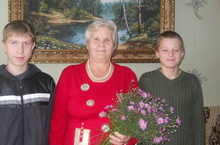Каждый пожилой человек нуждается во внимание своих близких. Сударкина В.В. не обижена вниманием своих внуков, но так приятно получить цветы от внука и его друга. 10.10.2013