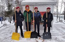 Юнармейцы расчистили снег возле памятников погибшим в ВОВ.