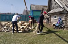 Бабушке привезли дрова, которые требовалось сложить в поленницу. А для людей пожилого возраста это не так-то и легко. Прибыв на место, юнармия быстро распределили обязанности: одни ребята носили дрова, а другие укладывали.