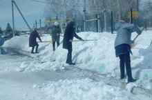 Юнармейцы нашей школы помогают людям старшего поколения в расчистке от снега придомовых территорий.