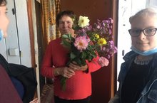 В этот день волонтёры посетили на дому Шахмаеву В,М., чтобы поздравить с Днём учителя, вручить цветы и подарить частичку тепла.