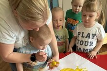 В нашем детском саду сегодня прошло веселое творческое занятие с малышами, они рисовали яркие солнечные лучики своими ладошками!