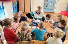В старшей группе прошла беседа о творчестве татарского поэта Муса Джалиля. Также дети прослушали его произведения " Кызыл ромашка". Провели занятие по рисованию на эту тему.