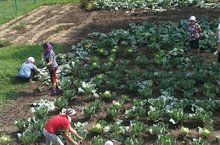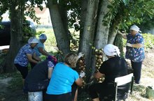 Сегодня педагоги совместно с тех.персоналом убирали первый урожай.