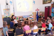 Воспитатель старшей группы детского сада провела беседу с воспитанниками по профилактике гриппа, ОРВИ и посмотрели мультфильм "Как бегемот боялся прививок?".