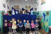 Нашим воспитанникам детского сада , артистами кукольного театра районного дома культуры "Капитошка" , была показана новогодняя сказка "Новогодний переполох Бабы-яги и Каркуши"