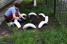 Сегодня сотрудники школы приняли активное участие в среднике по благоустройству территории. Высаживали рассады цветов, красили цветники и устанавливали новые.