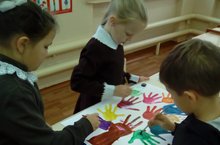 На уроке ИЗО учащиеся 2 а класса выполнили коллективную работу "Дерево дружбы".