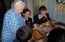 В рамках республиканской акции "Рецепт Победы", учащиеся 4 в класса посетили пожилых соседей. Они угостили пожилых пирогом.