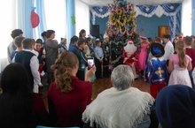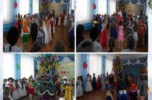 Праздник начался весёлой музыкой. Много разных приключений, чудес и испытаний прошли герои вместе с детьми. На праздник прибыли настоящие Дед Мороз и Снегурочка! Учащиеся порадовали присутствующих прекрасными песнями, стихами и играми. Дед Мороз и Снегурочка вручили каждому участнику праздника новогодние подарки. Доброго вам здоровья, благополучия! Пусть год Собаки принесет вам удачу в Новом году!
