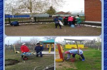 Проведенная работа: покраска и оформление клумб, демонтаж и копка земли в клумбах, наполнение песком песочницы детского сада и другие виды работ.