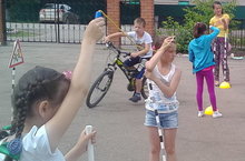 Сегодня в лагере день прошел под девизом "Готов к труду и обороне!". В рамках этого дня прошли массовые спортивные мероприятия.